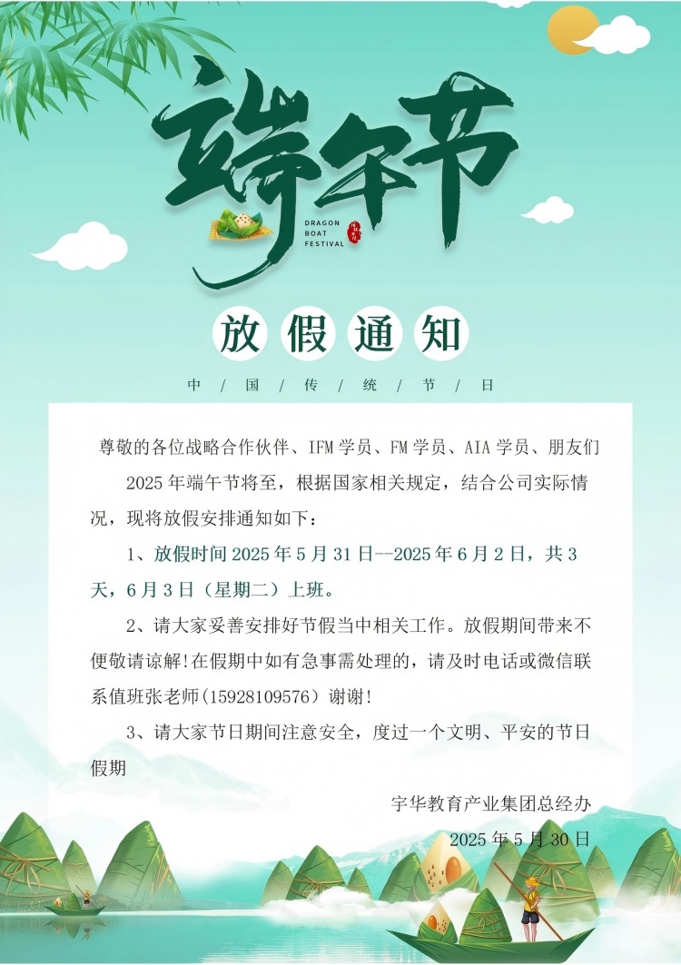 成都宇华教育产业集团关于2025年端午节放假通知