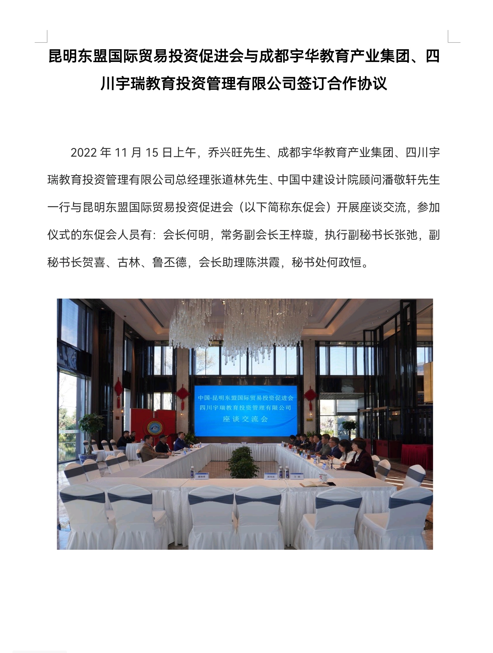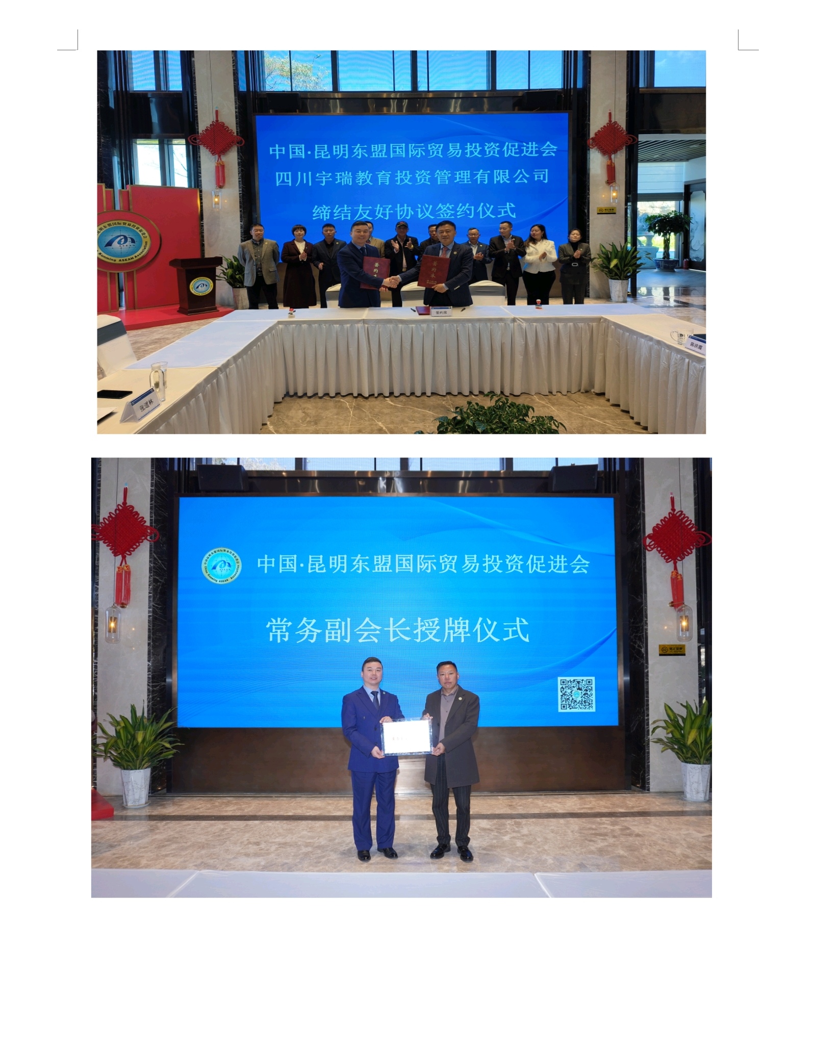 昆明东盟国际贸易投资促进会与成都宇华教育产业集团、四川宇瑞教育投资管理有限公司签订合作协议