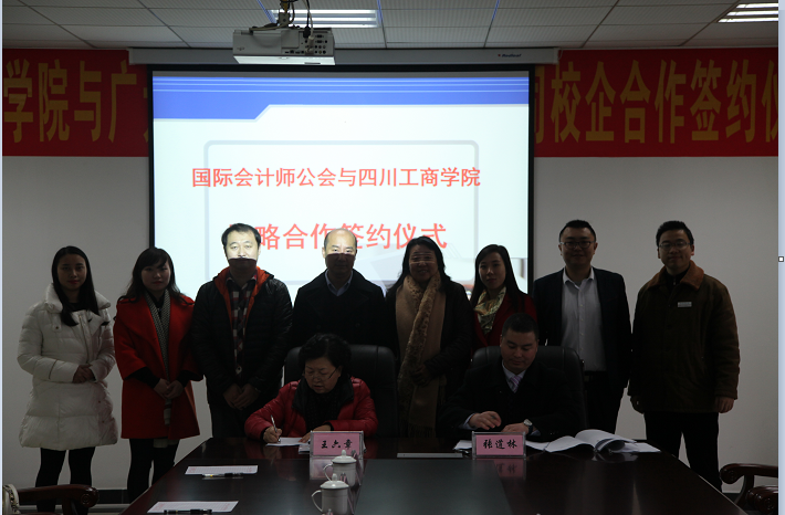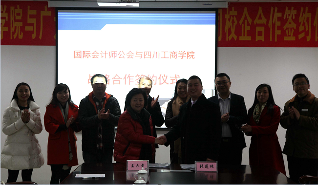 2015年12月9日上午我集团与四川工商学院、国际会计师公会(AIA)签订战略框架协议,意在培养国际化的专业人才。签约仪式在四川工商学院成都校区举行,此次参加战略合作的领导分别是:宇华教育集团总裁张道林先生,四川工商学院董事长王六章女士,孟虹院长以及国际商学院执行院长马常松先生。